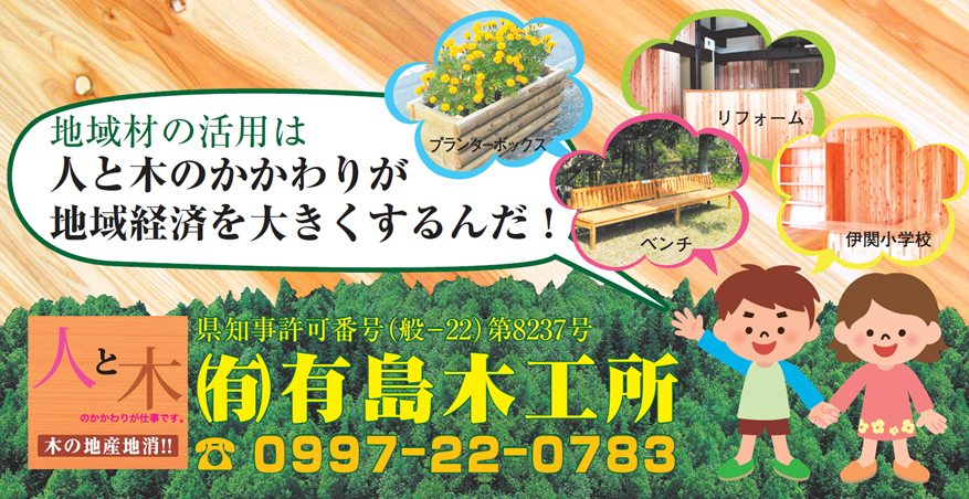 人と木=(有)有島木工所は、使用する木材のほとんどを種子島、屋久島の製材所より調達しています。